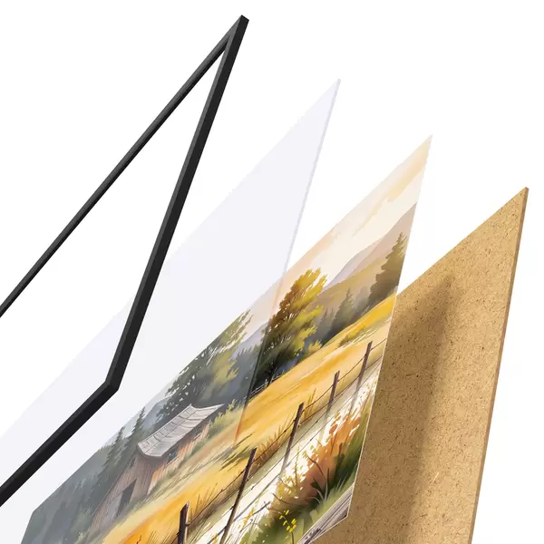 Plakatą sudaro rėmas, pleksiklas, atspausdintas vaizdas ir medžio drožlių plokštės pagrindas. Plakatą galima iš karto pakabinti ant sienos dėl kitoje pusėje esančių laikiklių.