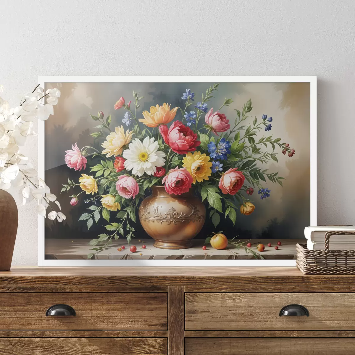 Plakatas Ryškus paveikslas su spalvingų gėlių puokšte, įskaitant raudonas rožes, geltonus narcizus ir baltas ramunes f40395