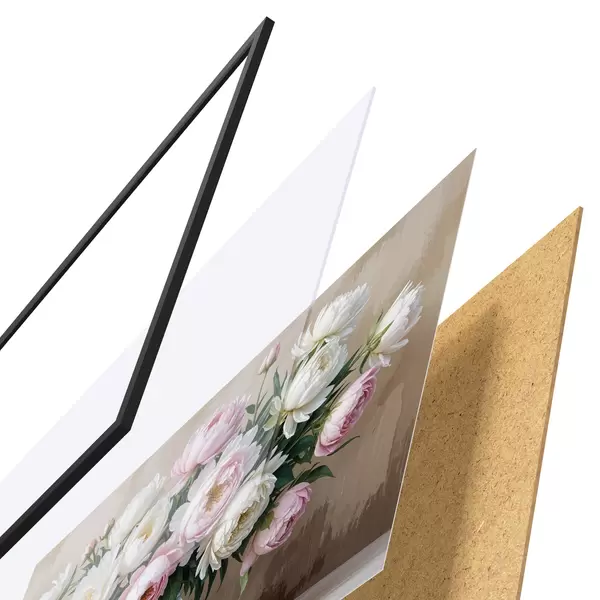 Plakatą sudaro rėmas, pleksiklas, atspausdintas vaizdas ir medžio drožlių plokštės pagrindas. Plakatą galima iš karto pakabinti ant sienos dėl kitoje pusėje esančių laikiklių.