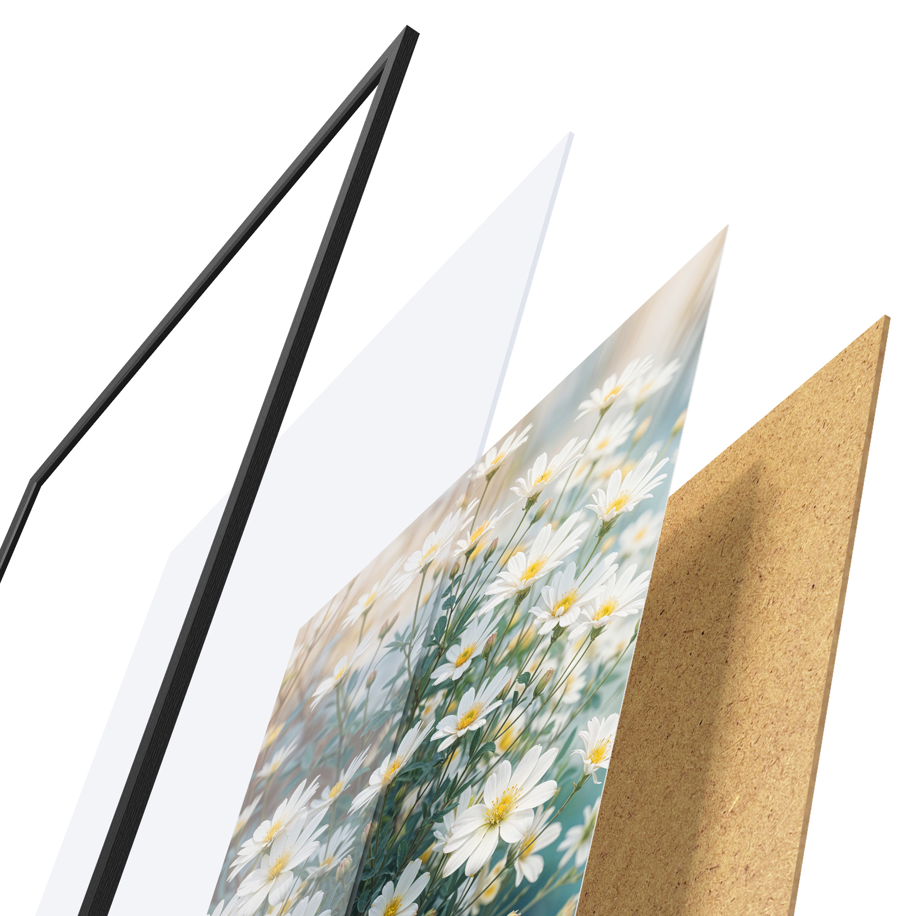 Plakatą sudaro rėmas, pleksiklas, atspausdintas vaizdas ir medžio drožlių plokštės pagrindas. Plakatą galima iš karto pakabinti ant sienos dėl kitoje pusėje esančių laikiklių.