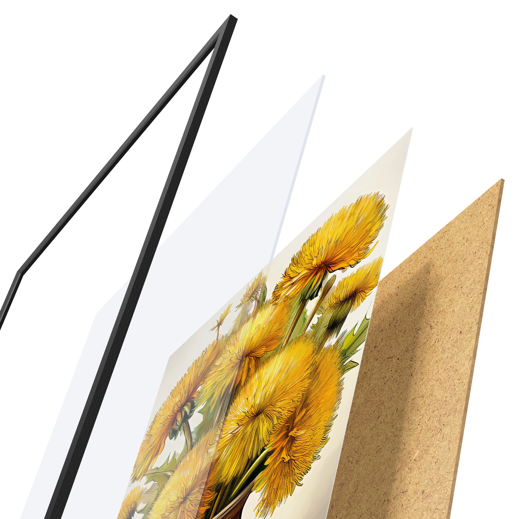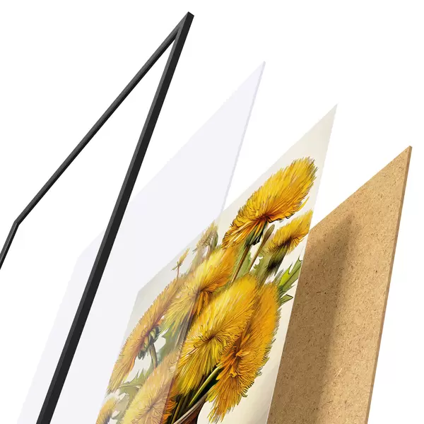 Plakatą sudaro rėmas, pleksiklas, atspausdintas vaizdas ir medžio drožlių plokštės pagrindas. Plakatą galima iš karto pakabinti ant sienos dėl kitoje pusėje esančių laikiklių.