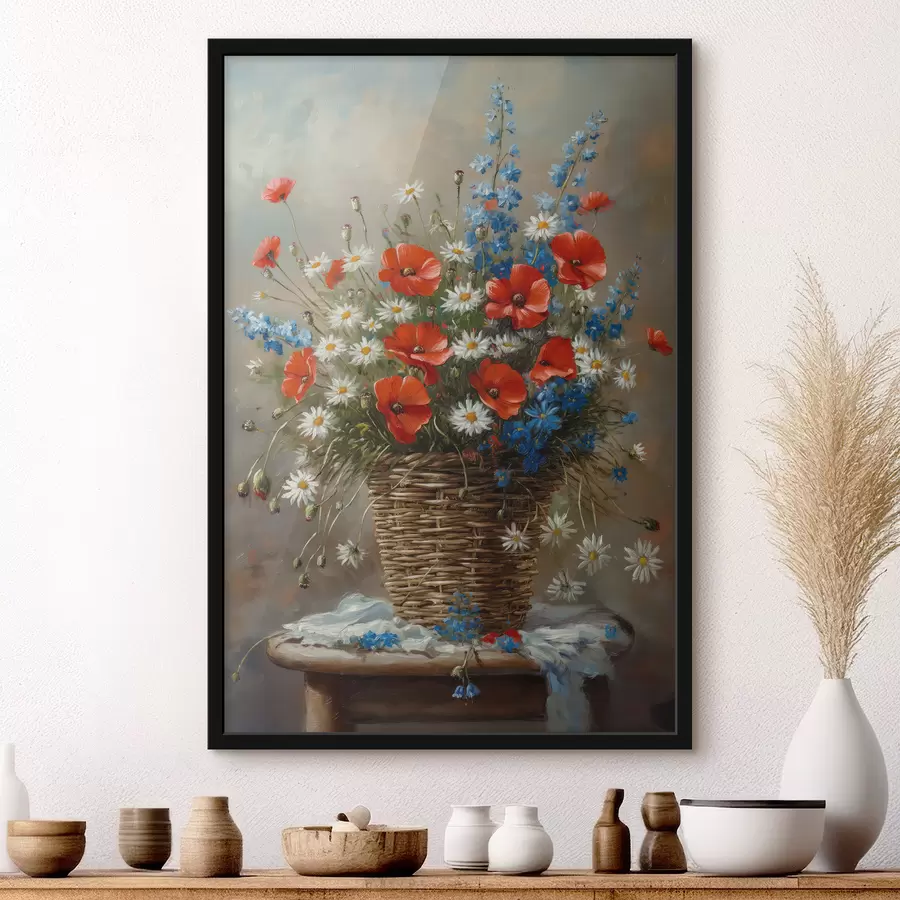 Plakatas ryški puokštė, lauko gėlės, gėlės vazoje Ne f40419