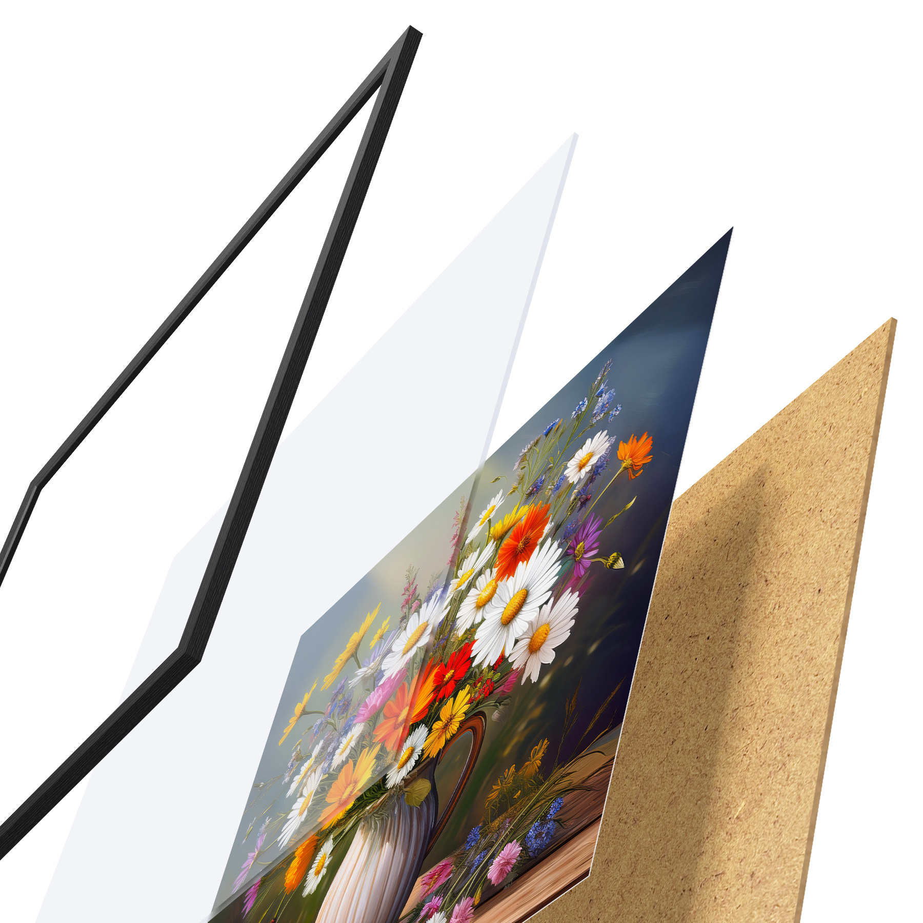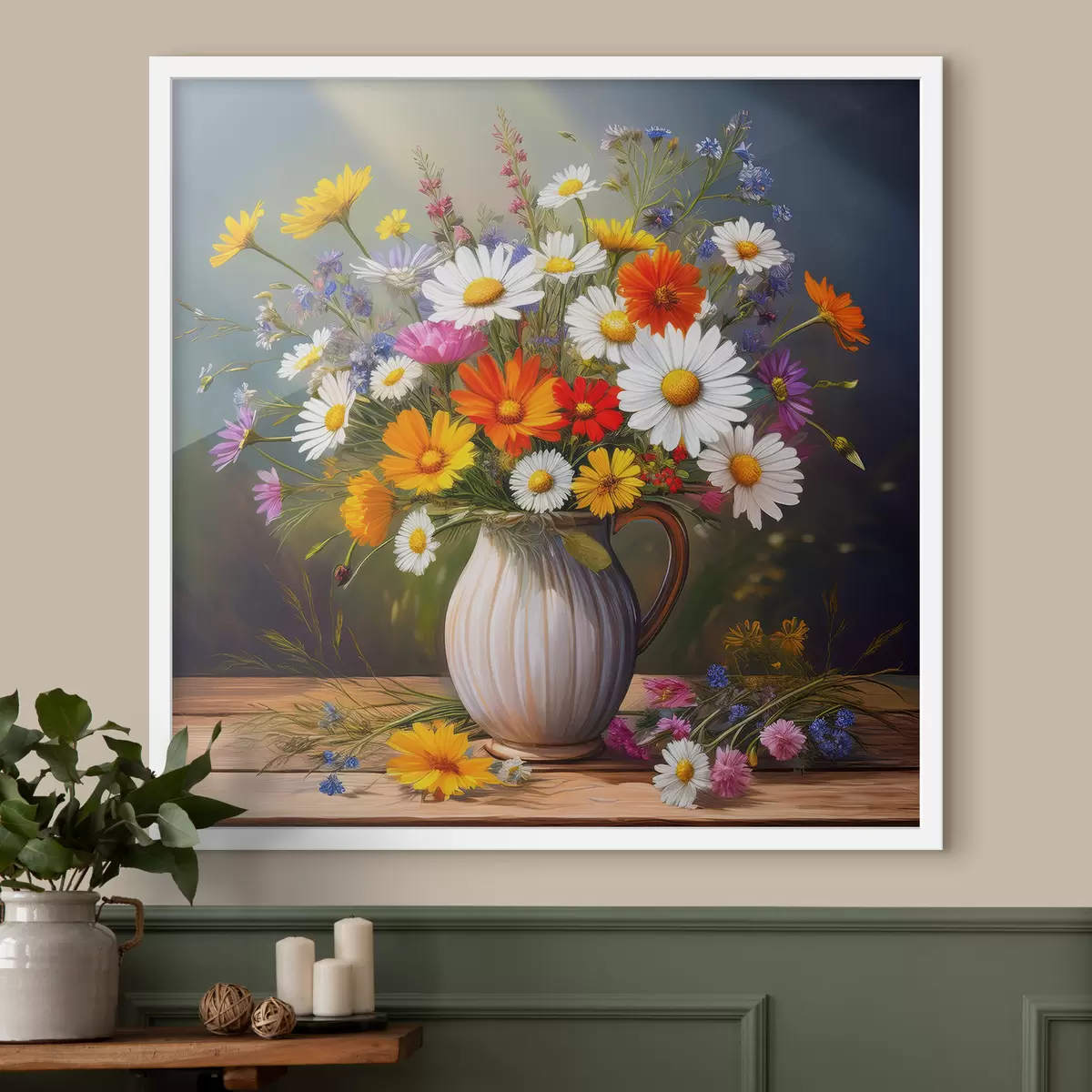 Plakatas ryški puokštė, lauko gėlės, gėlės vazoje f40419