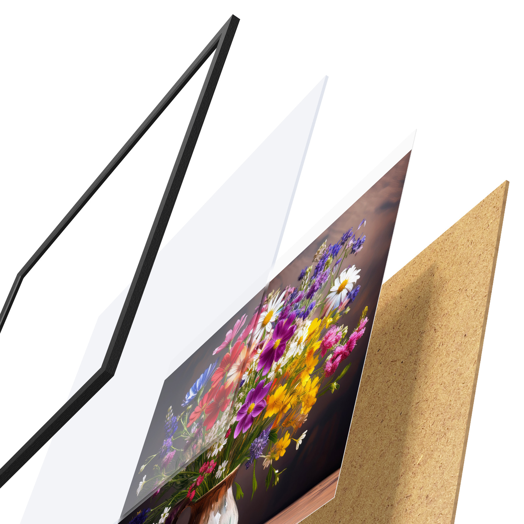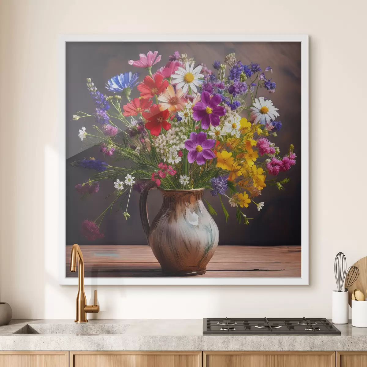 Plakatas ryškios laukinės gėlės vazoje f40420