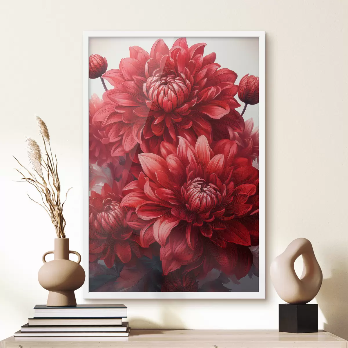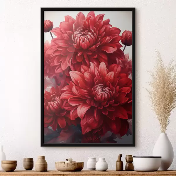 Plakatas raudonos chrizantemos iš arti Ne f40422
