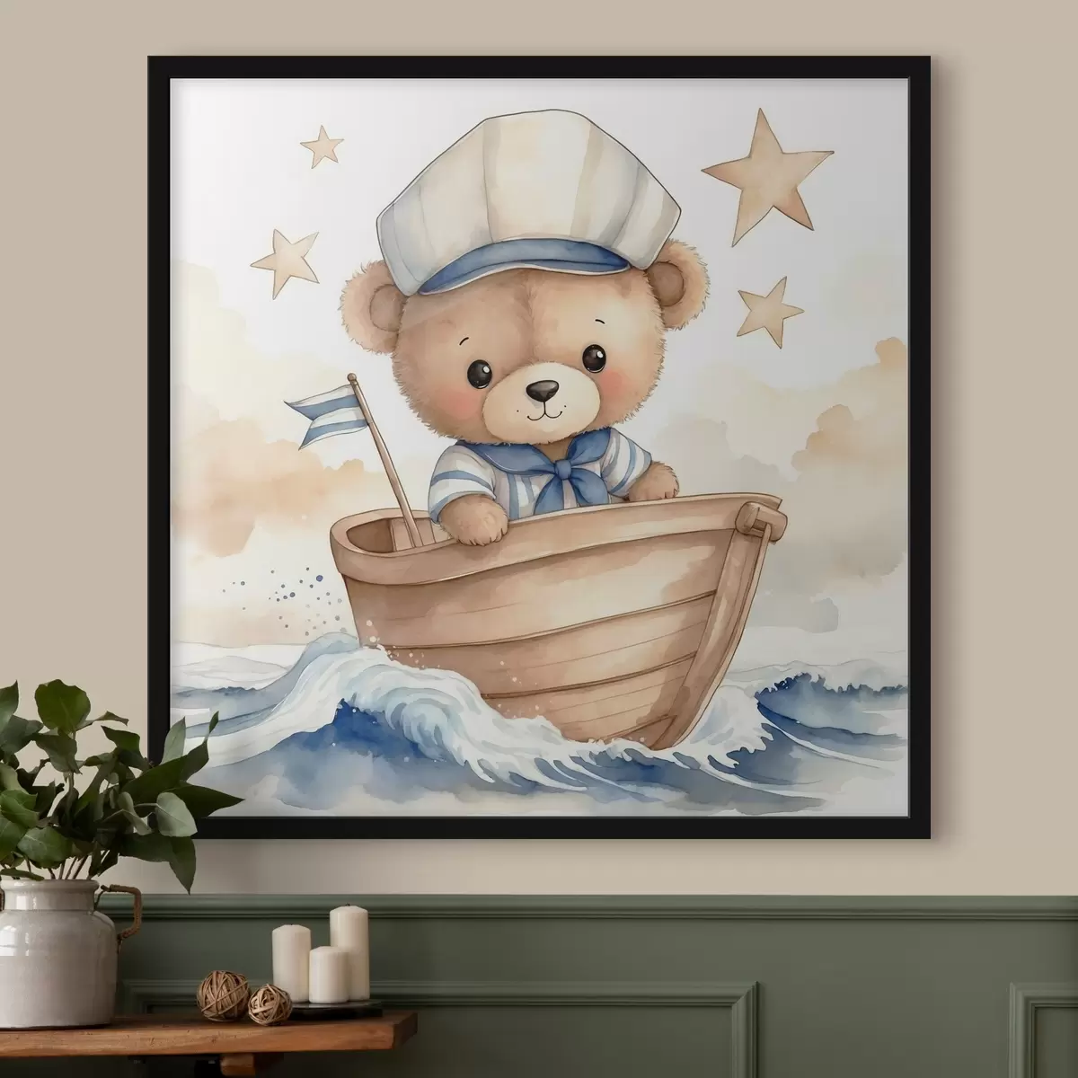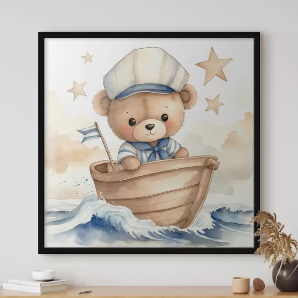 Plakatas Mielas akvarelinis meškiukas valtyje Ne f40428