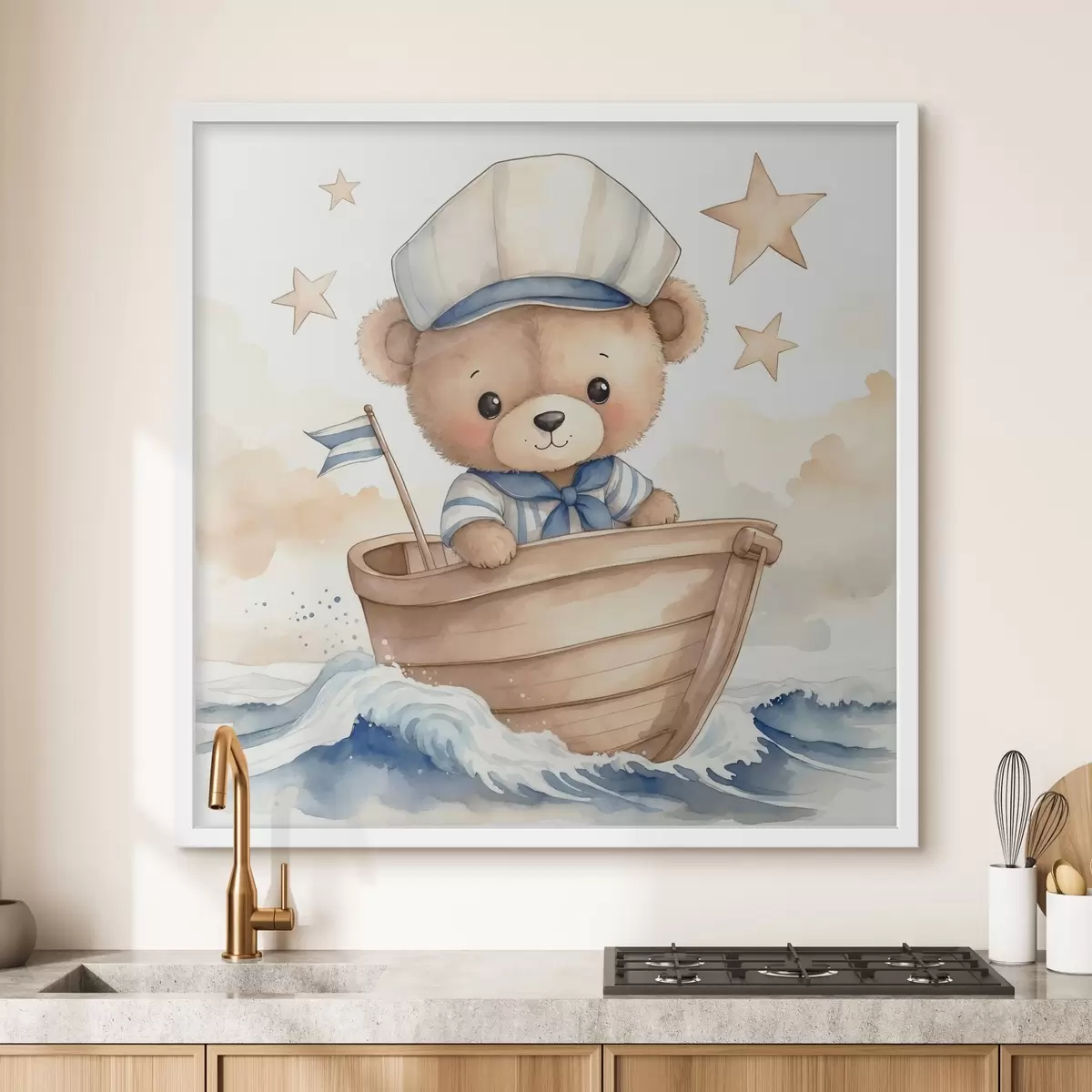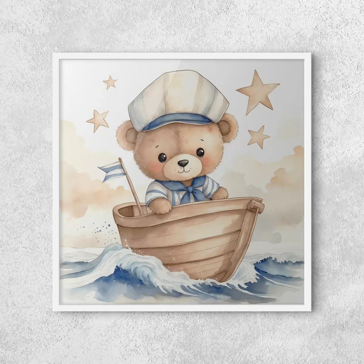 Plakatas Mielas akvarelinis meškiukas valtyje f40428