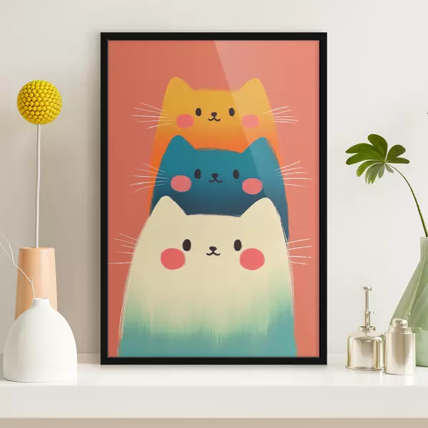 Plakatas Trys įvairiaspalvės abstrakčios katės f40431
