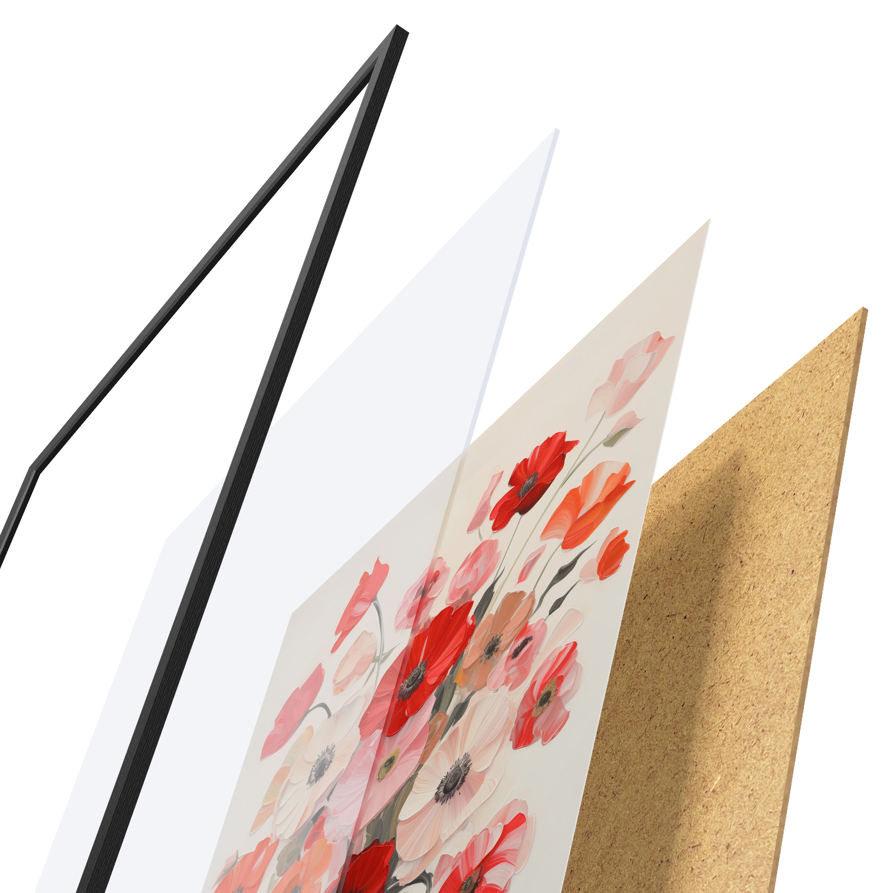 Plakatą sudaro rėmas, pleksiklas, atspausdintas vaizdas ir medžio drožlių plokštės pagrindas. Plakatą galima iš karto pakabinti ant sienos dėl kitoje pusėje esančių laikiklių.