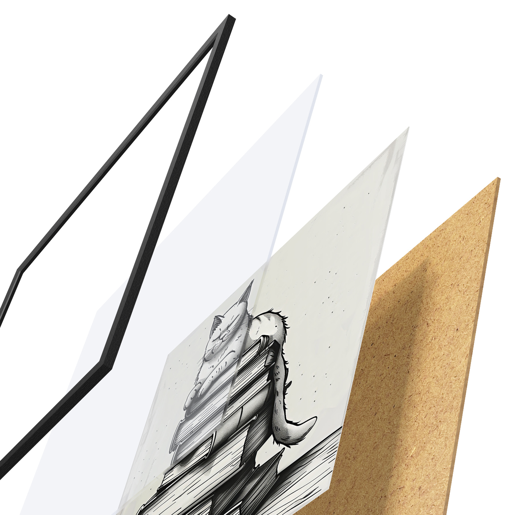 Plakatas Juoda ir balta katė ant knygų krūvos Ne f40435