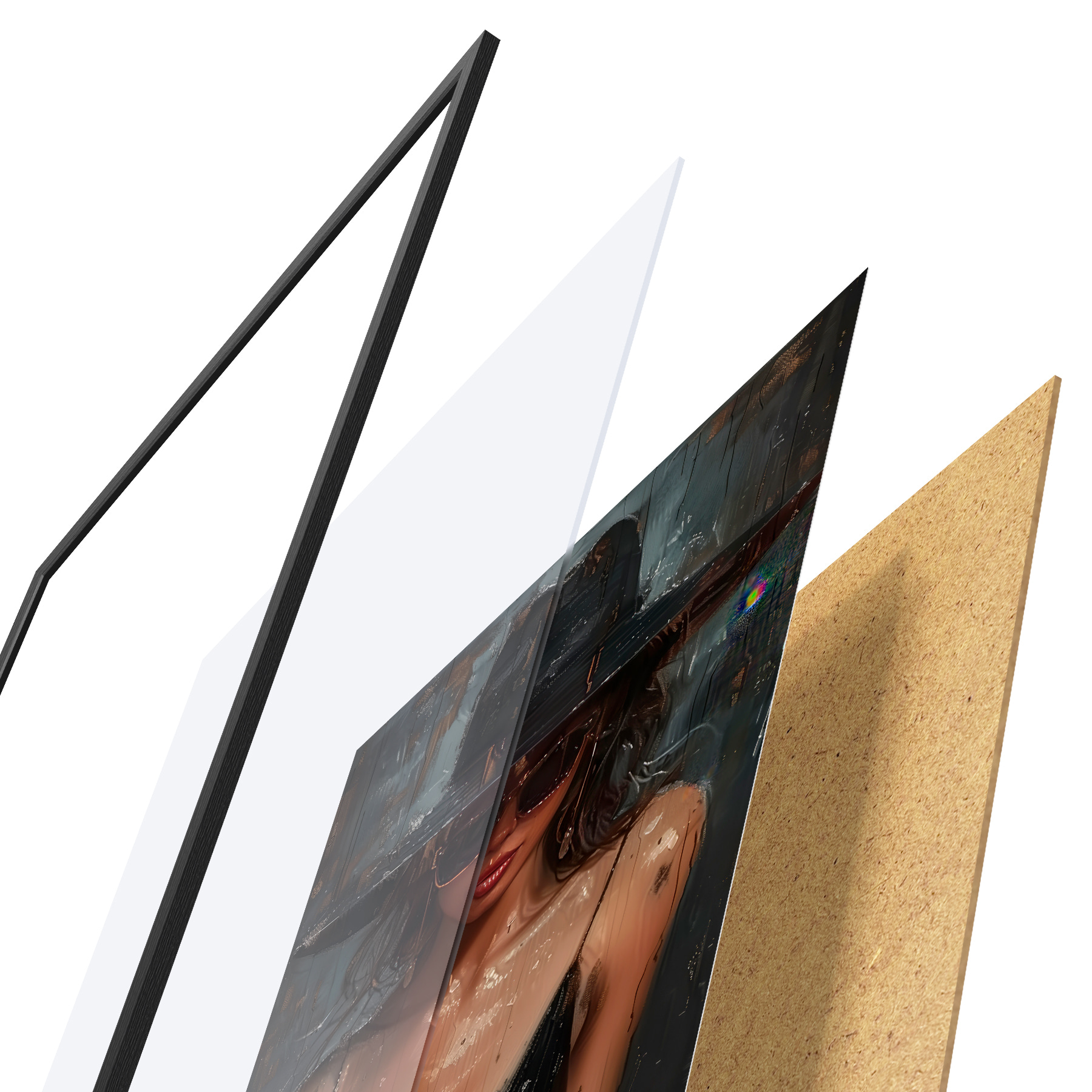 Plakatą sudaro rėmas, pleksiklas, atspausdintas vaizdas ir medžio drožlių plokštės pagrindas. Plakatą galima iš karto pakabinti ant sienos dėl kitoje pusėje esančių laikiklių.