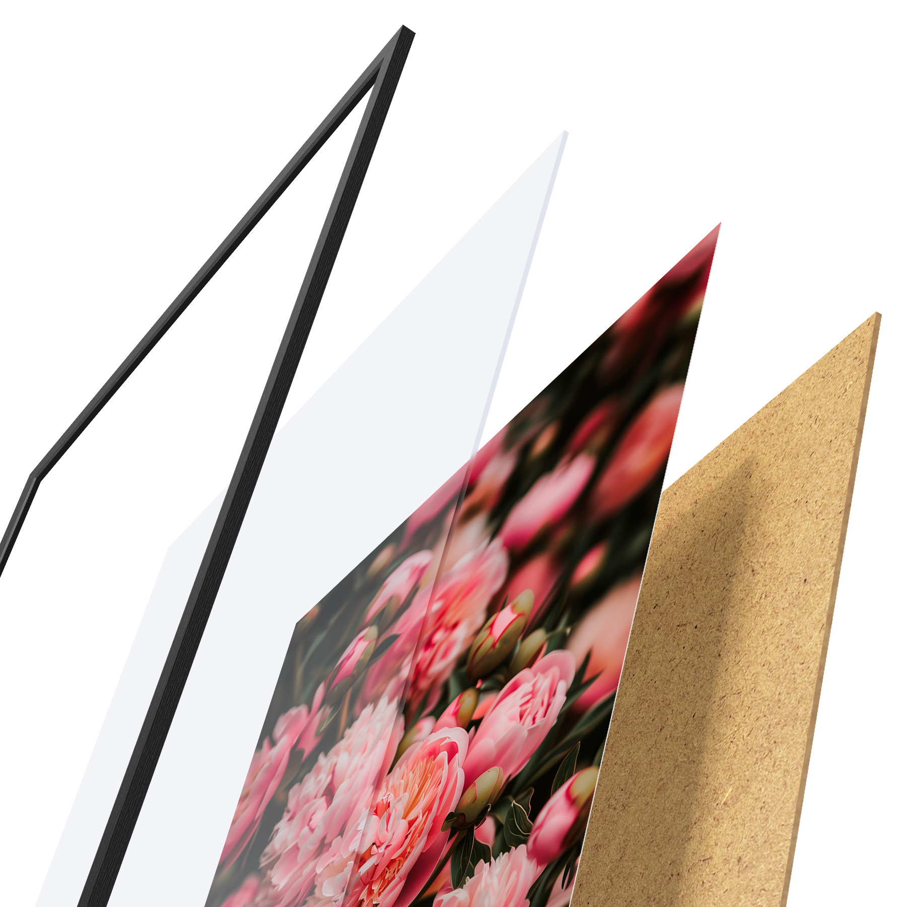 Plakatą sudaro rėmas, pleksiklas, atspausdintas vaizdas ir medžio drožlių plokštės pagrindas. Plakatą galima iš karto pakabinti ant sienos dėl kitoje pusėje esančių laikiklių.