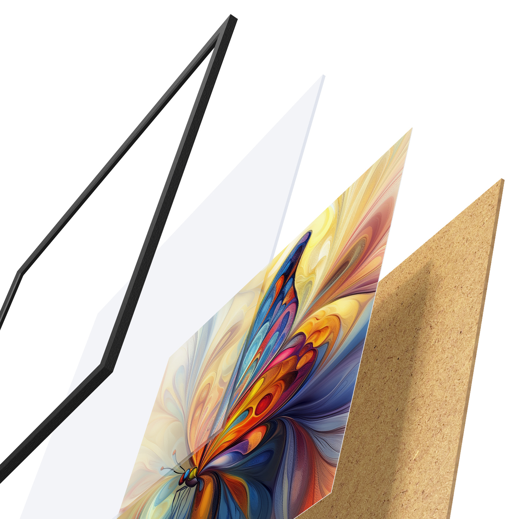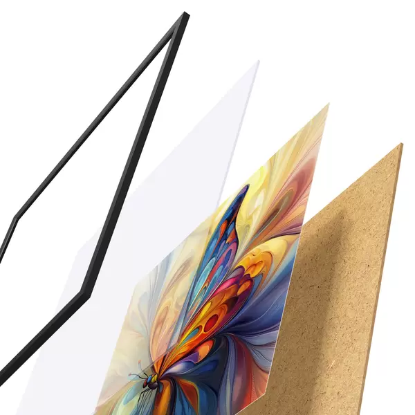 Plakatą sudaro rėmas, pleksiklas, atspausdintas vaizdas ir medžio drožlių plokštės pagrindas. Plakatą galima iš karto pakabinti ant sienos dėl kitoje pusėje esančių laikiklių.