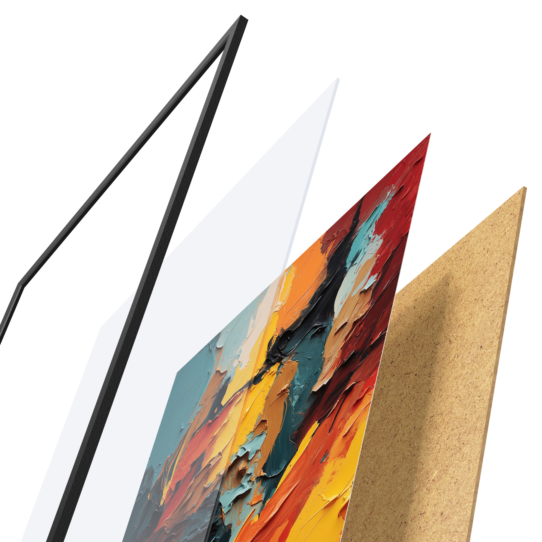Plakatą sudaro rėmas, pleksiklas, atspausdintas vaizdas ir medžio drožlių plokštės pagrindas. Plakatą galima iš karto pakabinti ant sienos dėl kitoje pusėje esančių laikiklių.