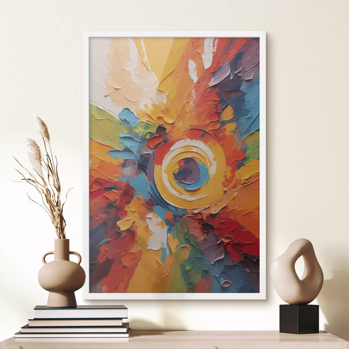 Plakatas Abstrakti aliejinė tapyba su apskritimu centre f40458