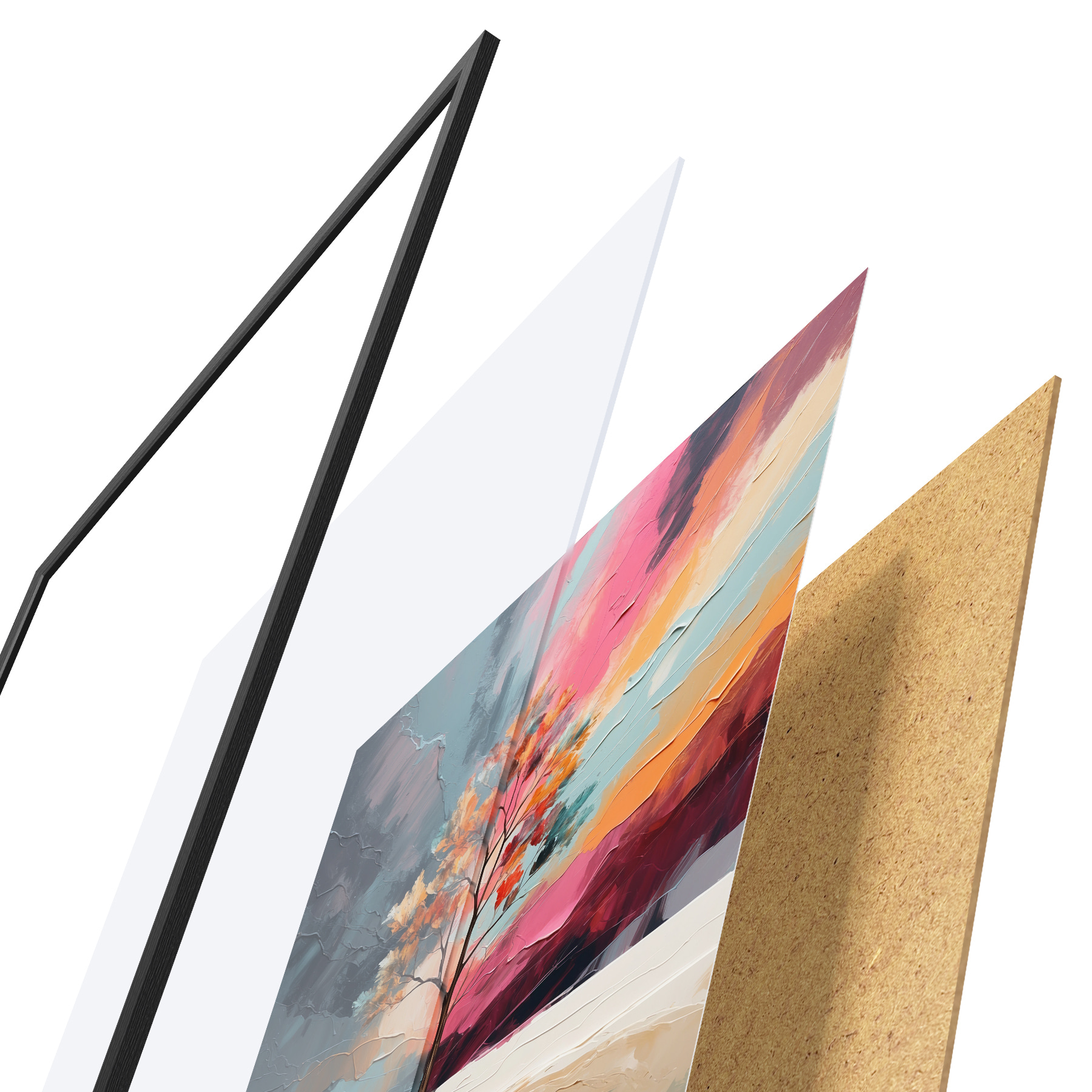 Plakatą sudaro rėmas, pleksiklas, atspausdintas vaizdas ir medžio drožlių plokštės pagrindas. Plakatą galima iš karto pakabinti ant sienos dėl kitoje pusėje esančių laikiklių.