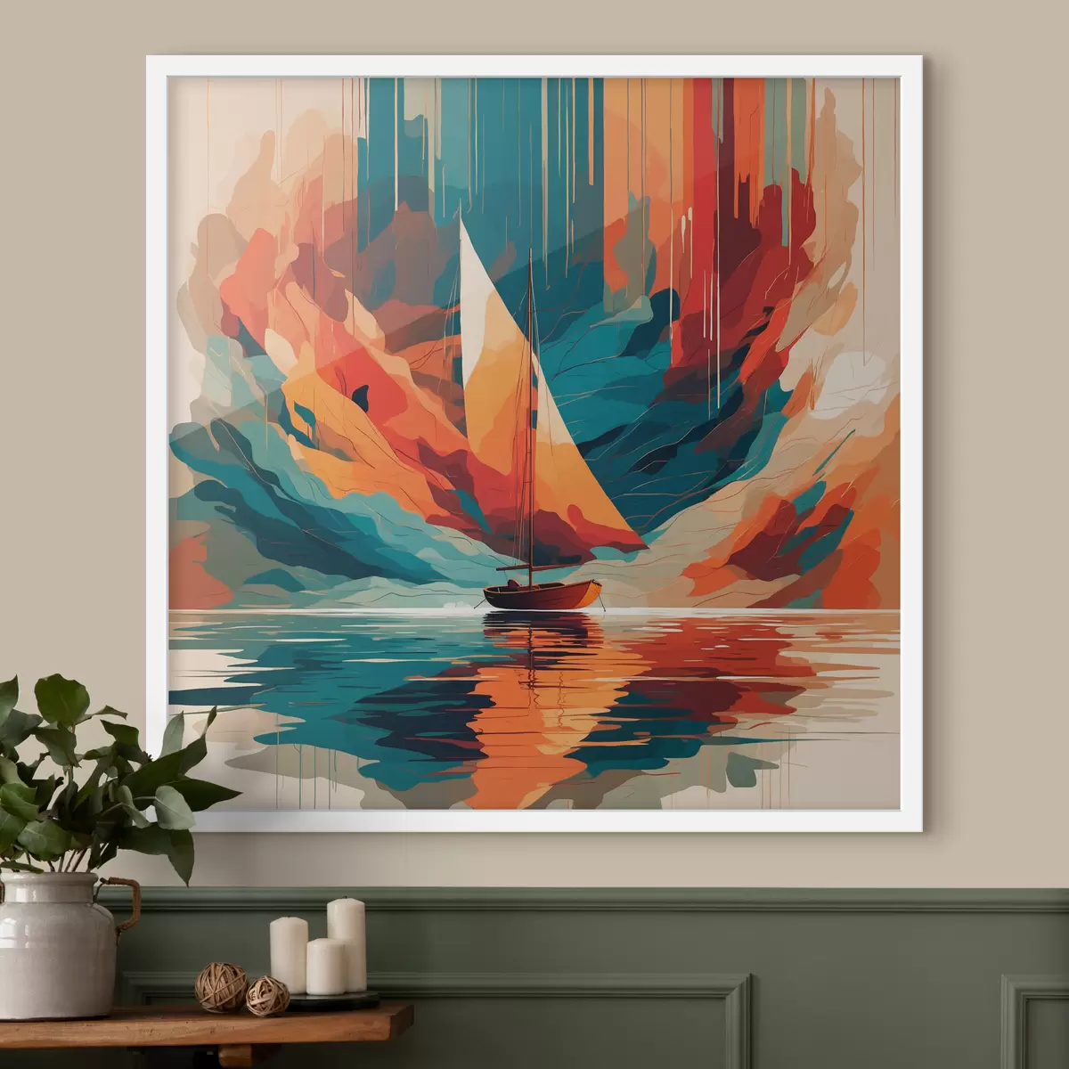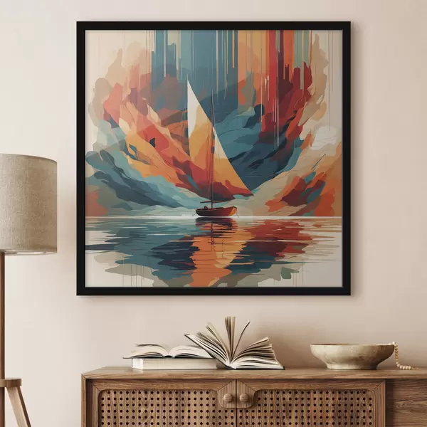 Plakatas Laivas ant ežero vektorinėje grafikoje f40462