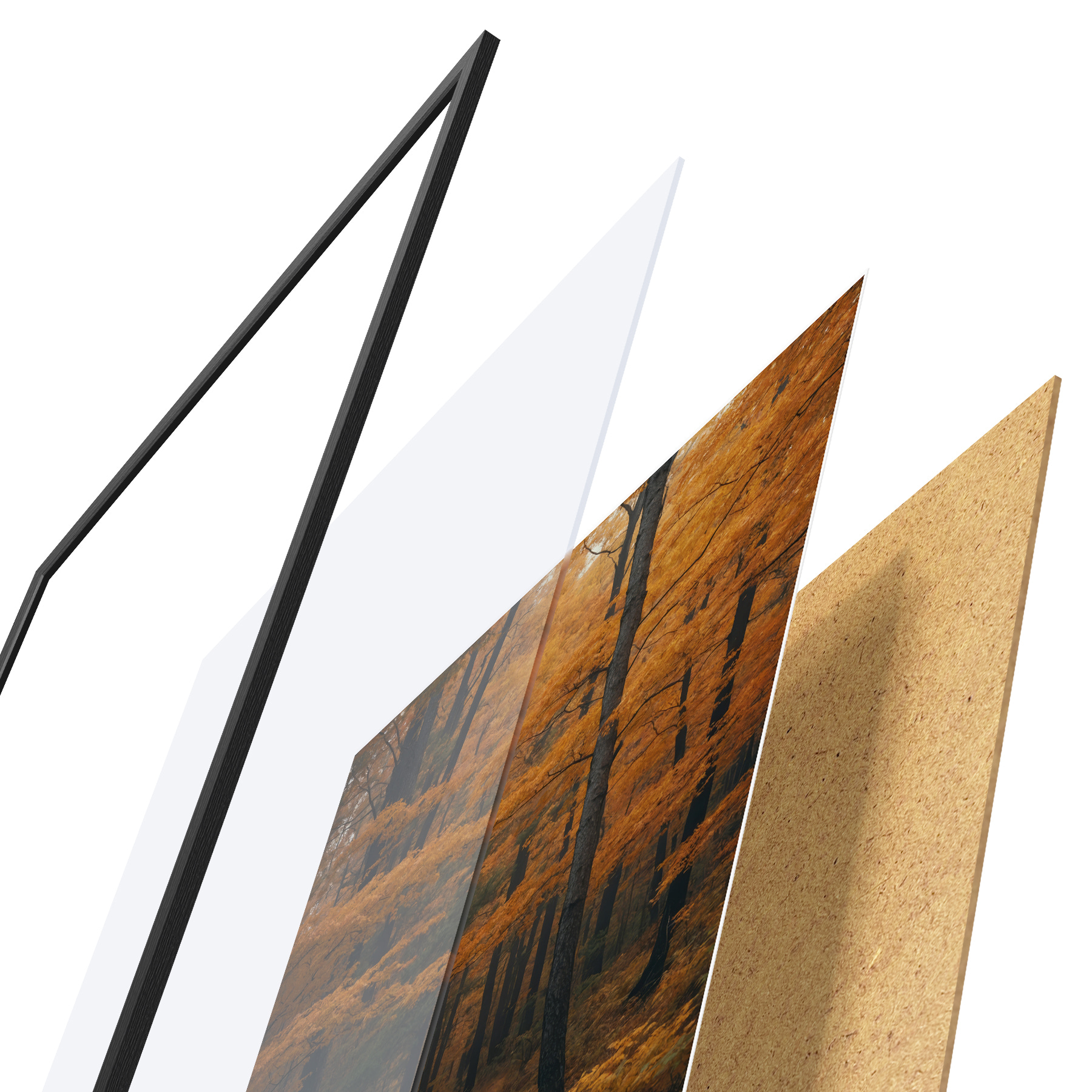 Plakatą sudaro rėmas, pleksiklas, atspausdintas vaizdas ir medžio drožlių plokštės pagrindas. Plakatą galima iš karto pakabinti ant sienos dėl kitoje pusėje esančių laikiklių.