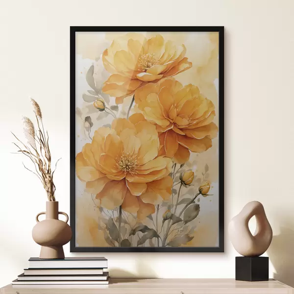 Plakatas Geltonos gėlės neryškiame fone f40482