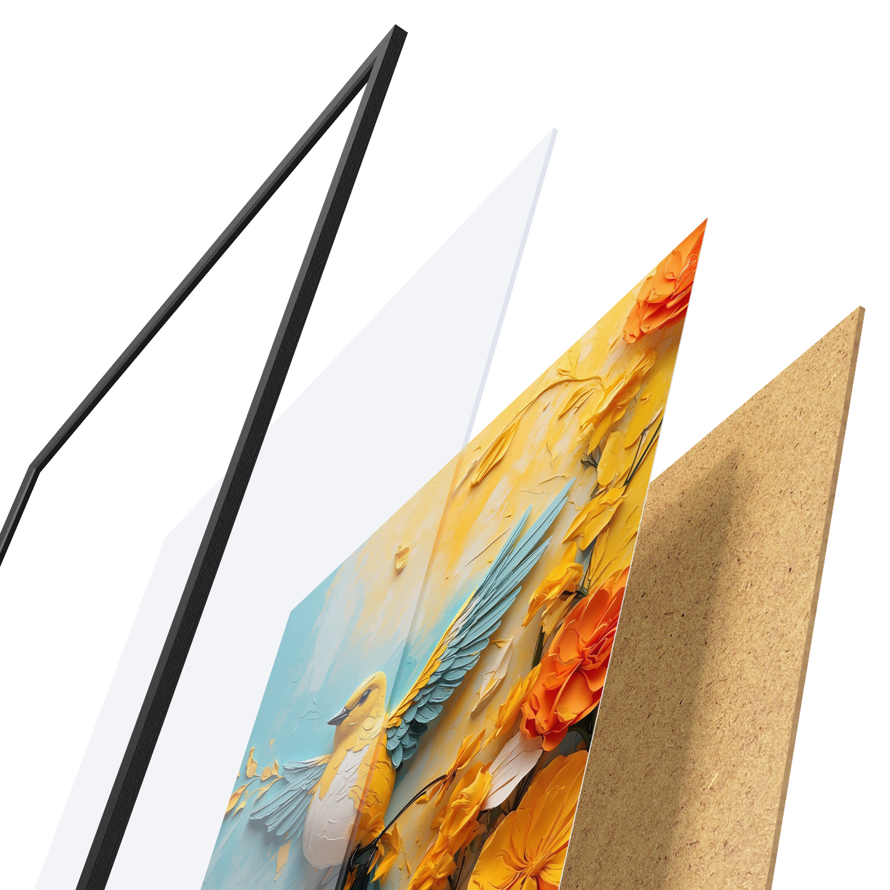 Plakatą sudaro rėmas, pleksiklas, atspausdintas vaizdas ir medžio drožlių plokštės pagrindas. Plakatą galima iš karto pakabinti ant sienos dėl kitoje pusėje esančių laikiklių.