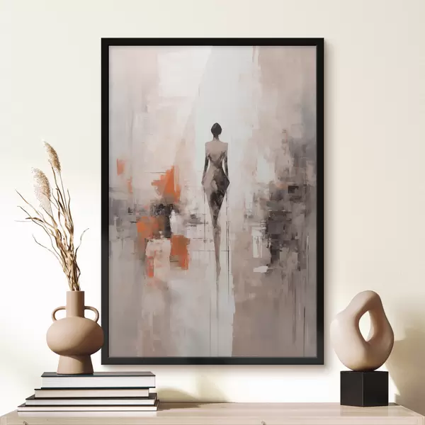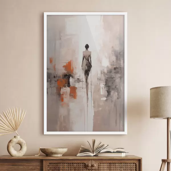 Plakatas Abstraktus moters siluetas, nubrozdinimų ir teptuko potėpių imitacija Ne f40485