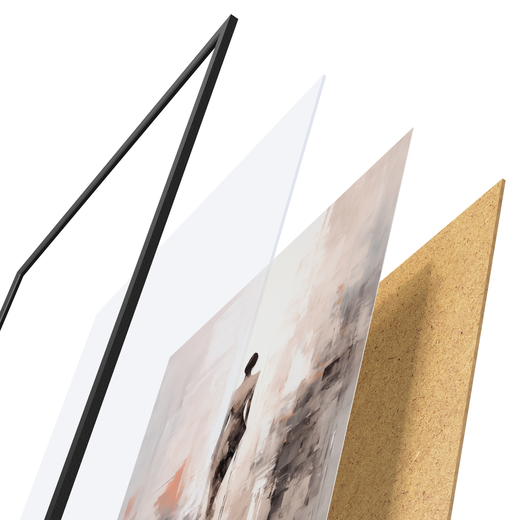 Plakatą sudaro rėmas, pleksiklas, atspausdintas vaizdas ir medžio drožlių plokštės pagrindas. Plakatą galima iš karto pakabinti ant sienos dėl kitoje pusėje esančių laikiklių.