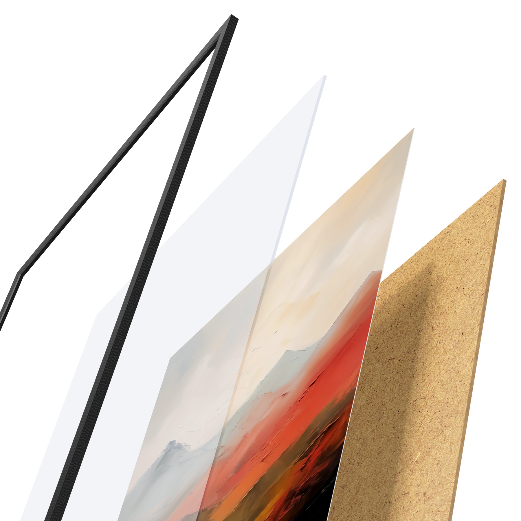 Plakatą sudaro rėmas, pleksiklas, atspausdintas vaizdas ir medžio drožlių plokštės pagrindas. Plakatą galima iš karto pakabinti ant sienos dėl kitoje pusėje esančių laikiklių.