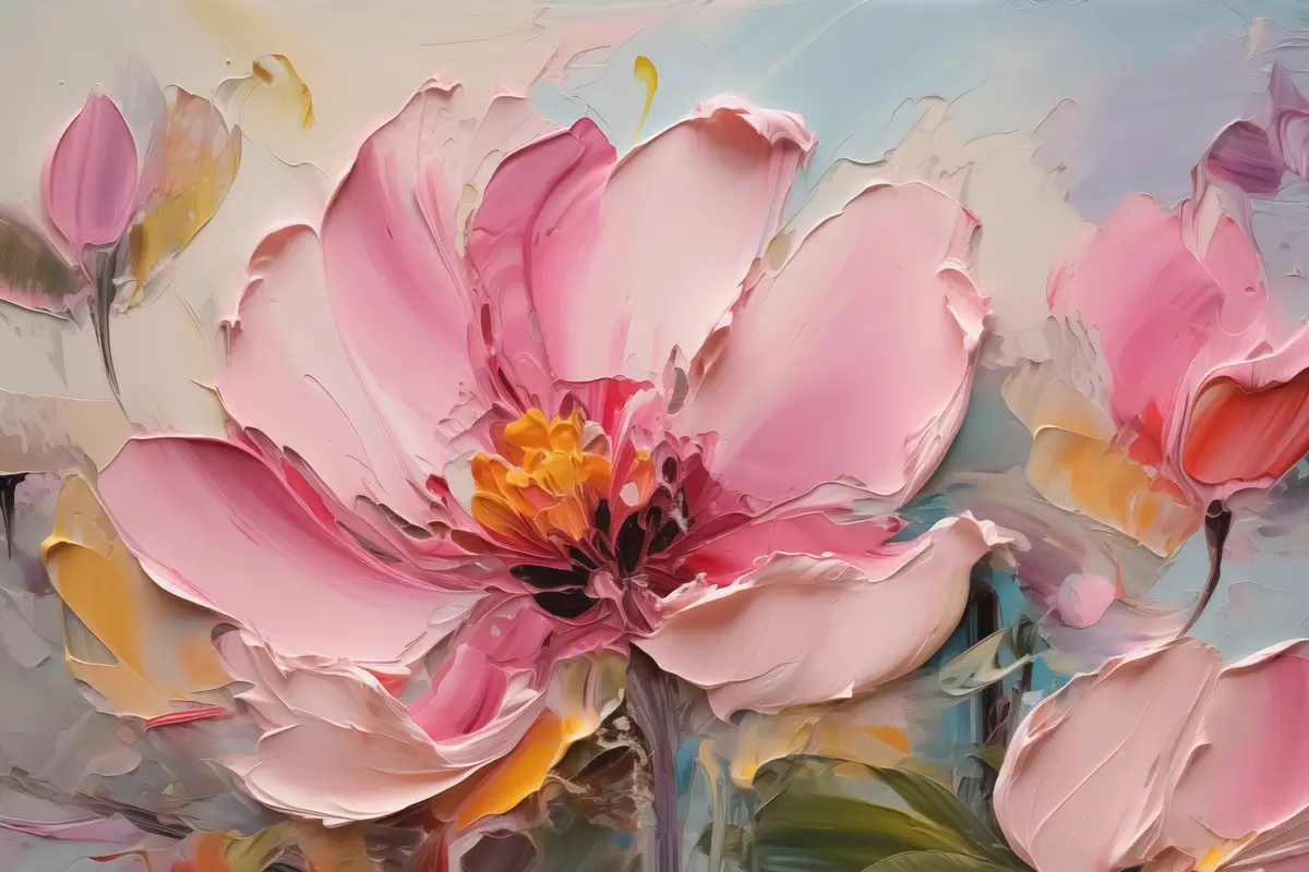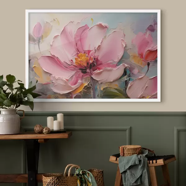 Plakatas Didelės rožinės gėlės dažų potėpių imitacija Ne f40494