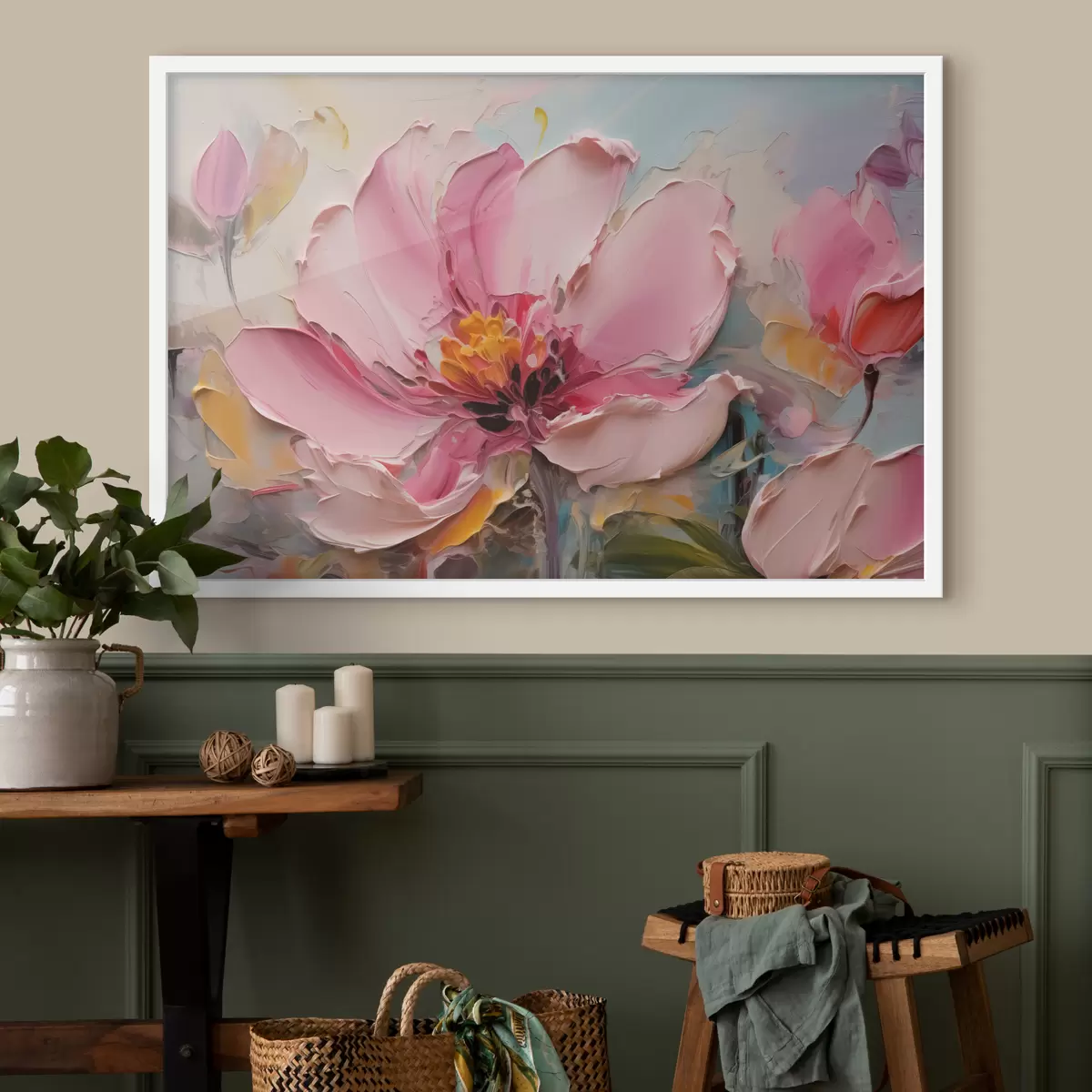 Plakatas Didelės rožinės gėlės dažų potėpių imitacija f40494