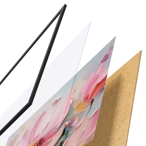 Plakatą sudaro rėmas, pleksiklas, atspausdintas vaizdas ir medžio drožlių plokštės pagrindas. Plakatą galima iš karto pakabinti ant sienos dėl kitoje pusėje esančių laikiklių.