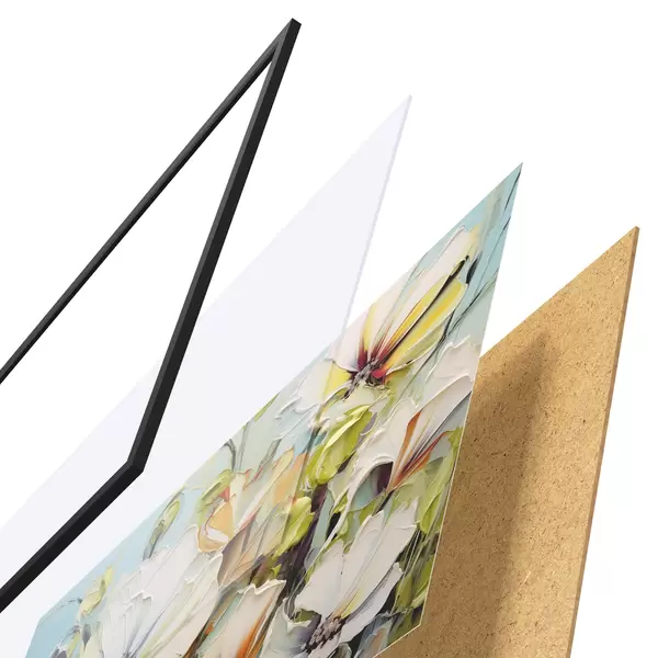 Plakatą sudaro rėmas, pleksiklas, atspausdintas vaizdas ir medžio drožlių plokštės pagrindas. Plakatą galima iš karto pakabinti ant sienos dėl kitoje pusėje esančių laikiklių.
