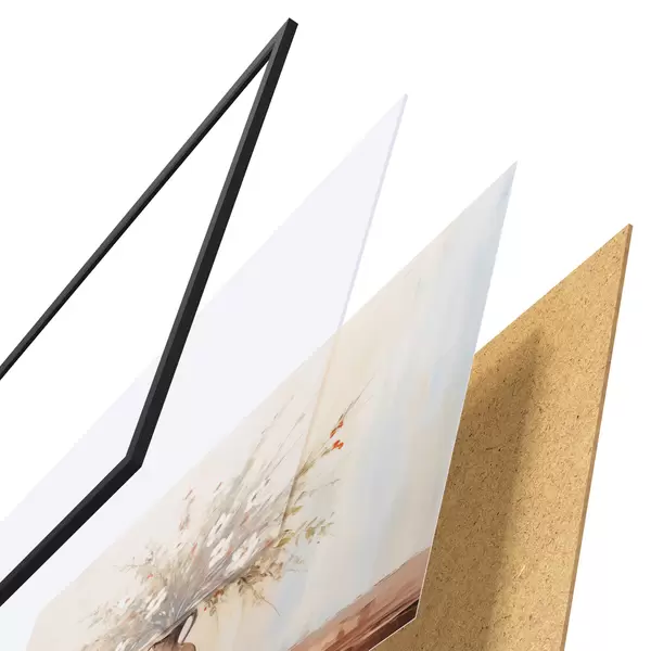 Plakatą sudaro rėmas, pleksiklas, atspausdintas vaizdas ir medžio drožlių plokštės pagrindas. Plakatą galima iš karto pakabinti ant sienos dėl kitoje pusėje esančių laikiklių.