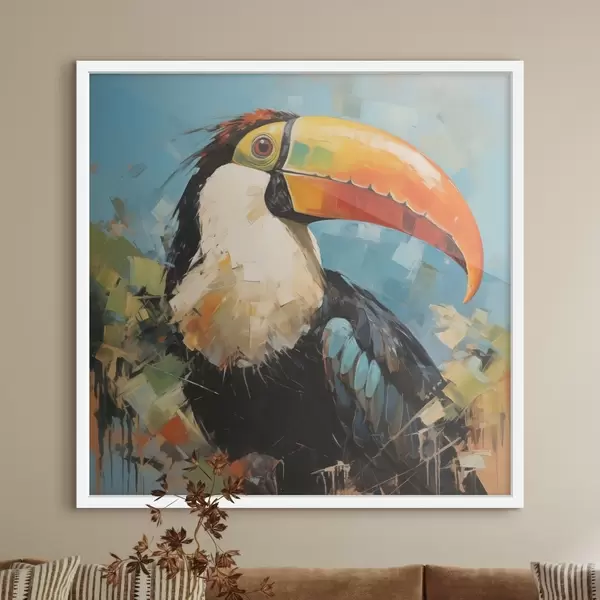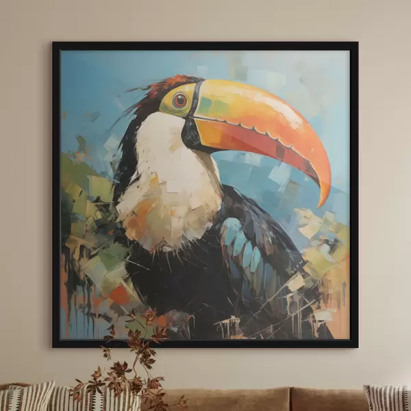 Plakatas Tukanų paukštis mėlyname žaliame fone, teptuko potėpių imitacija f40498