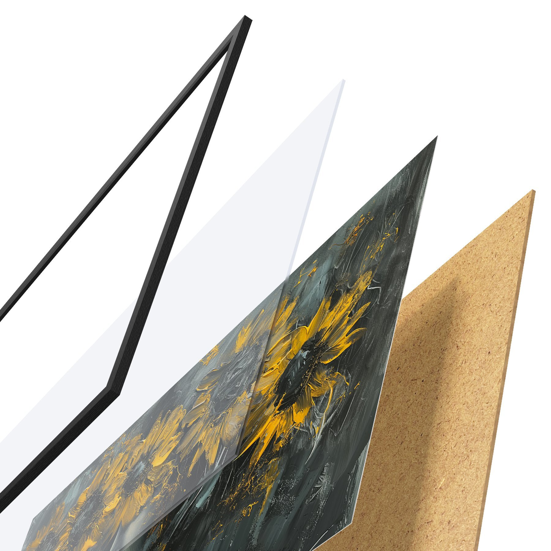 Plakatas Abstrakčios saulėgrąžos, dengiančios mergaitės veidą f40501