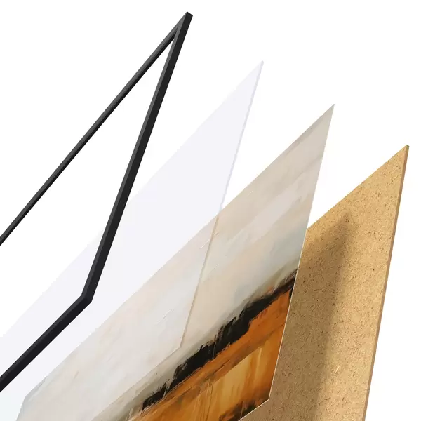 Plakatą sudaro rėmas, pleksiklas, atspausdintas vaizdas ir medžio drožlių plokštės pagrindas. Plakatą galima iš karto pakabinti ant sienos dėl kitoje pusėje esančių laikiklių.