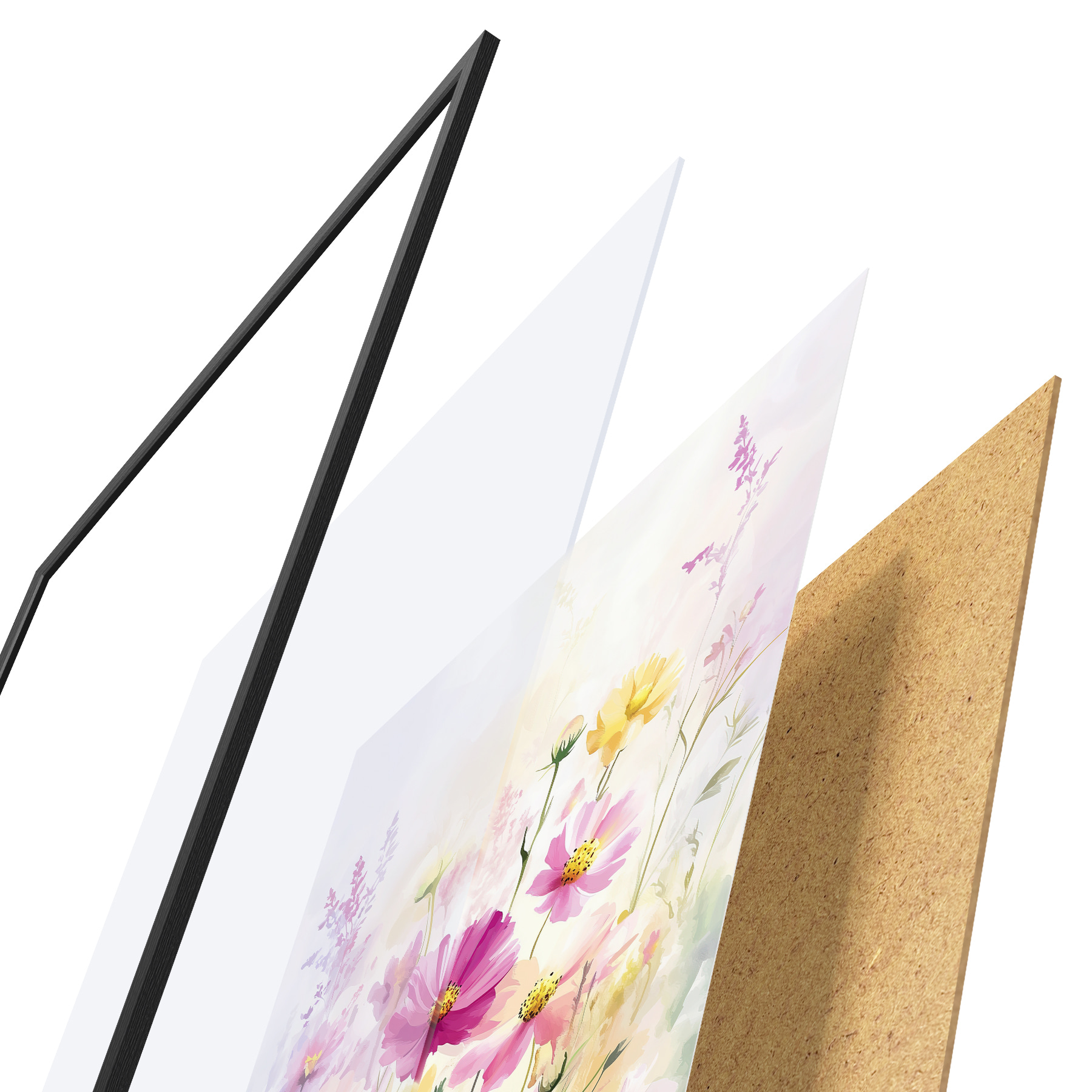 Plakatą sudaro rėmas, pleksiklas, atspausdintas vaizdas ir medžio drožlių plokštės pagrindas. Plakatą galima iš karto pakabinti ant sienos dėl kitoje pusėje esančių laikiklių.