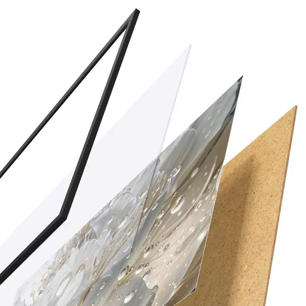 Plakatą sudaro rėmas, pleksiklas, atspausdintas vaizdas ir medžio drožlių plokštės pagrindas. Plakatą galima iš karto pakabinti ant sienos dėl kitoje pusėje esančių laikiklių.