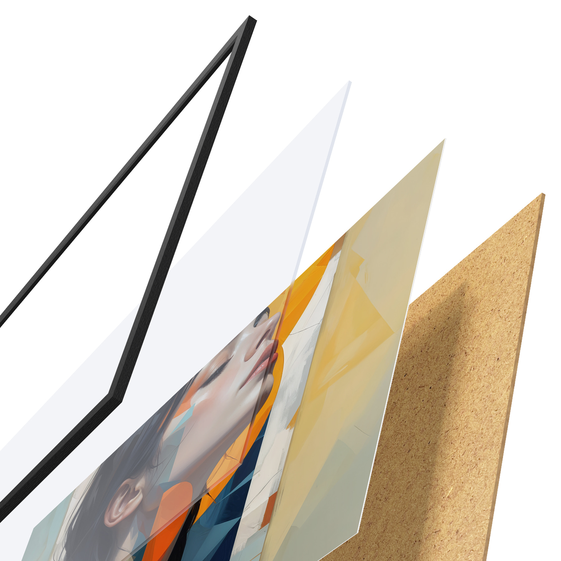Plakatą sudaro rėmas, pleksiklas, atspausdintas vaizdas ir medžio drožlių plokštės pagrindas. Plakatą galima iš karto pakabinti ant sienos dėl kitoje pusėje esančių laikiklių.