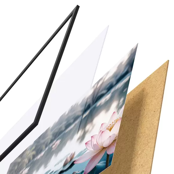 Plakatą sudaro rėmas, pleksiklas, atspausdintas vaizdas ir medžio drožlių plokštės pagrindas. Plakatą galima iš karto pakabinti ant sienos dėl kitoje pusėje esančių laikiklių.