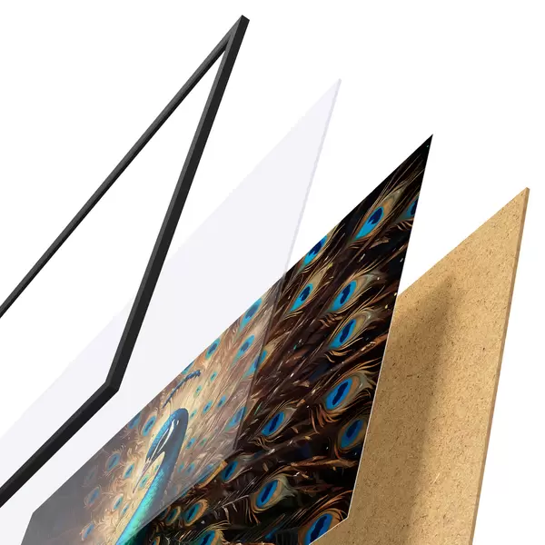 Plakatą sudaro rėmas, pleksiklas, atspausdintas vaizdas ir medžio drožlių plokštės pagrindas. Plakatą galima iš karto pakabinti ant sienos dėl kitoje pusėje esančių laikiklių.