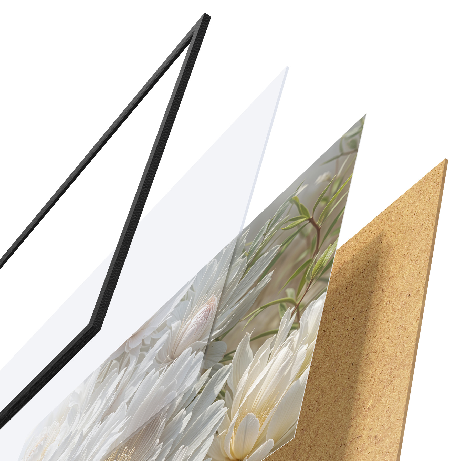 Plakatą sudaro rėmas, pleksiklas, atspausdintas vaizdas ir medžio drožlių plokštės pagrindas. Plakatą galima iš karto pakabinti ant sienos dėl kitoje pusėje esančių laikiklių.