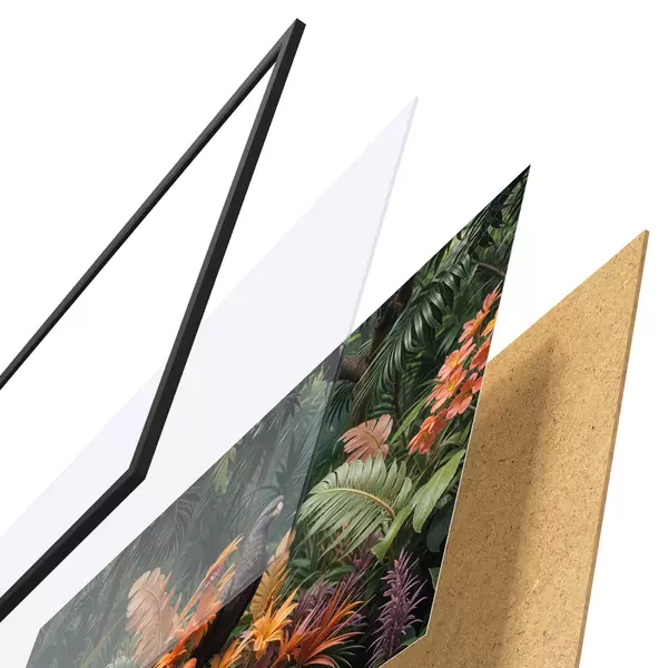 Plakatą sudaro rėmas, pleksiklas, atspausdintas vaizdas ir medžio drožlių plokštės pagrindas. Plakatą galima iš karto pakabinti ant sienos dėl kitoje pusėje esančių laikiklių.