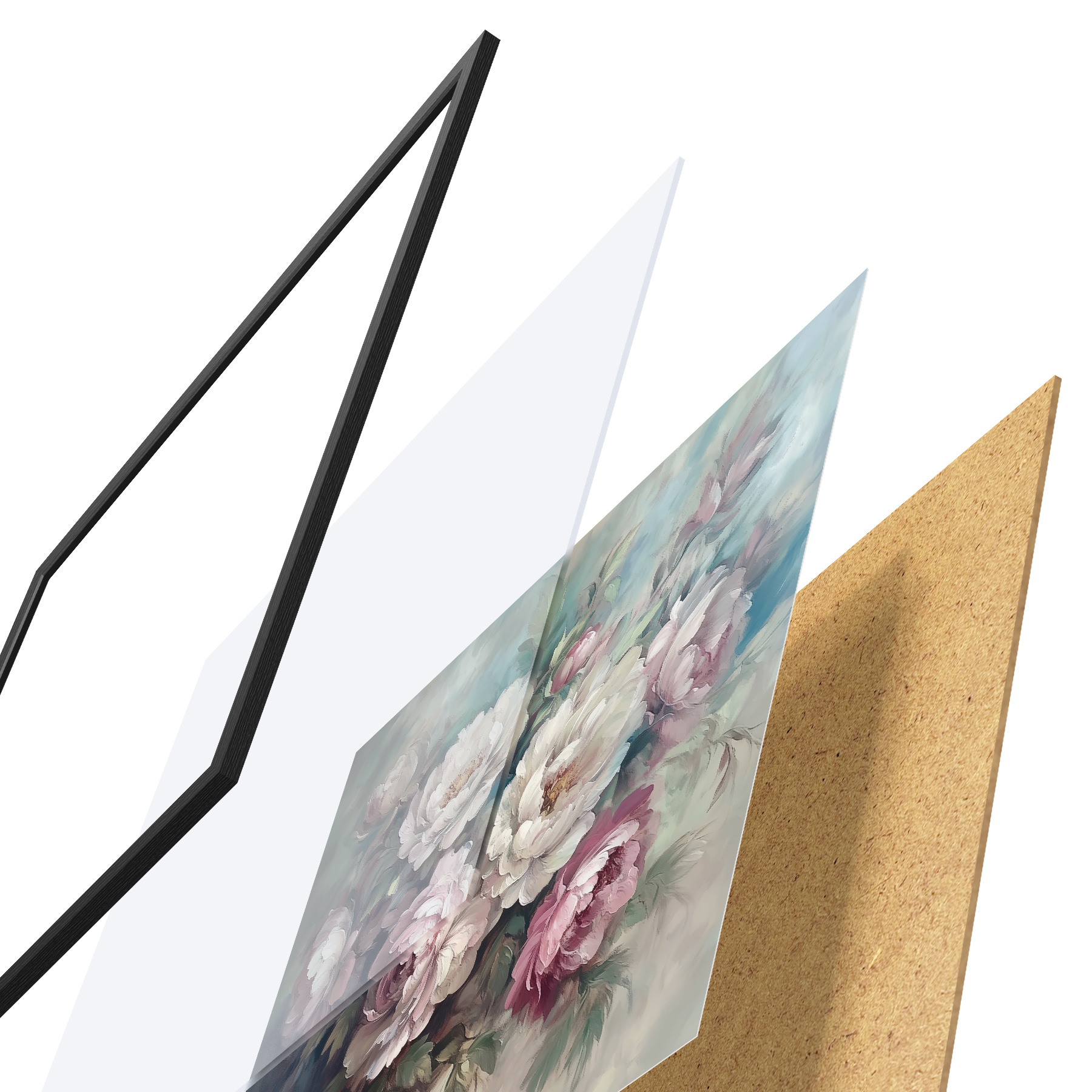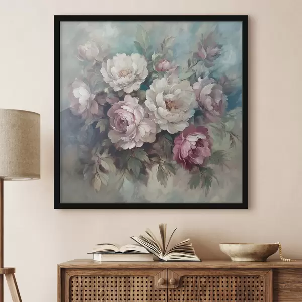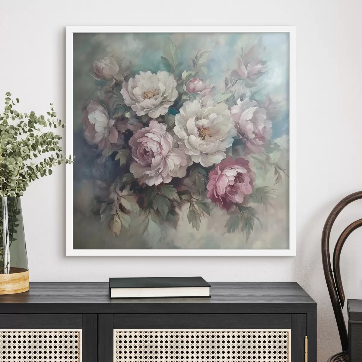 Plakatas Rožinių ir baltų bijūnų puokštė aliejiniais dažais Ne f40582