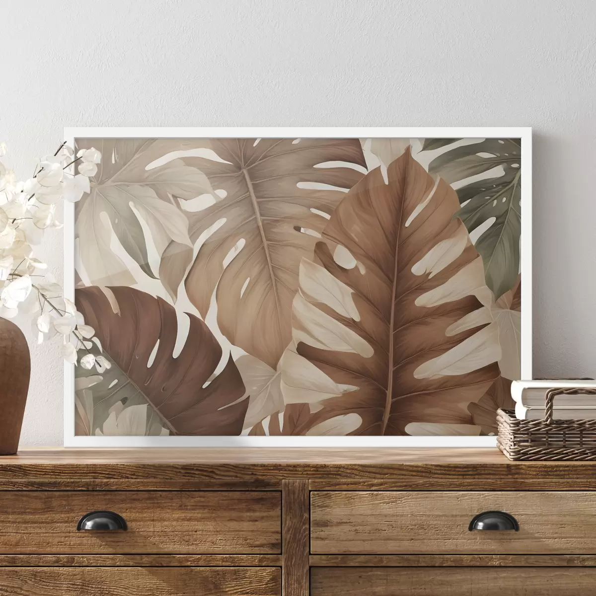 Plakatas Atogrąžų natūralių, organinės tekstūros rudų ir smėlio atspalvių lapų spauda Ne f40613