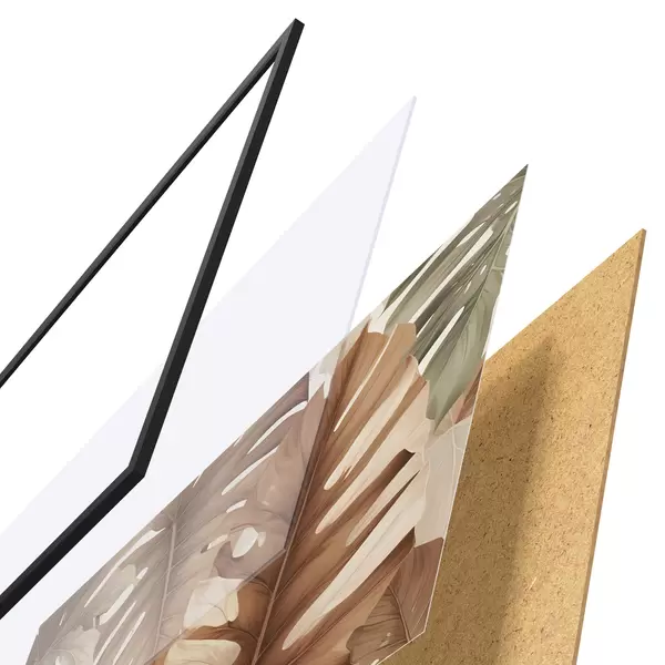 Plakatą sudaro rėmas, pleksiklas, atspausdintas vaizdas ir medžio drožlių plokštės pagrindas. Plakatą galima iš karto pakabinti ant sienos dėl kitoje pusėje esančių laikiklių.