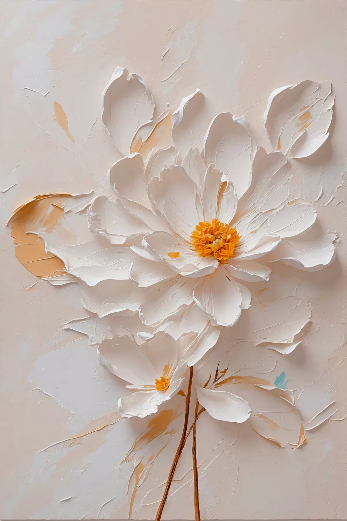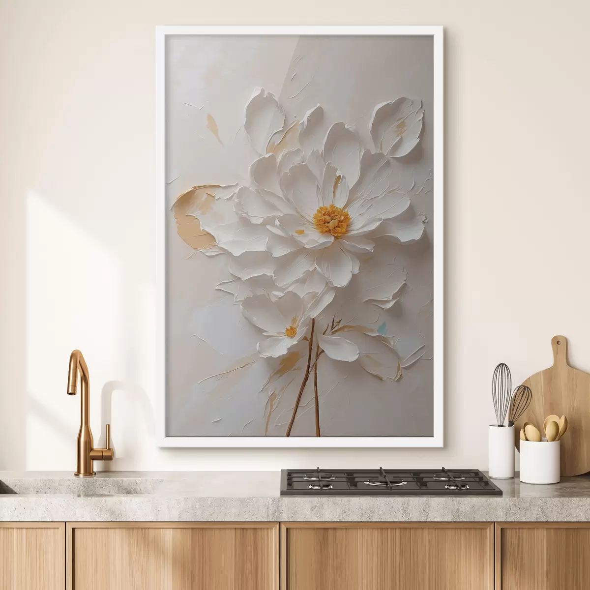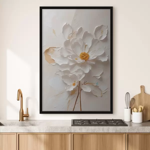 Plakatas Balta gėlė aliejuje su rudu stiebu f40619