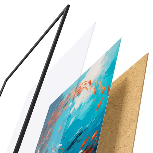 Plakatą sudaro rėmas, pleksiklas, atspausdintas vaizdas ir medžio drožlių plokštės pagrindas. Plakatą galima iš karto pakabinti ant sienos dėl kitoje pusėje esančių laikiklių.