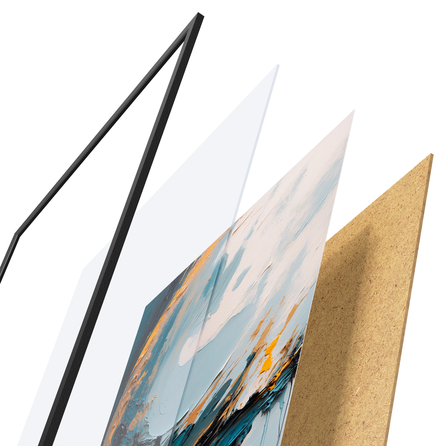 Plakatą sudaro rėmas, pleksiklas, atspausdintas vaizdas ir medžio drožlių plokštės pagrindas. Plakatą galima iš karto pakabinti ant sienos dėl kitoje pusėje esančių laikiklių.