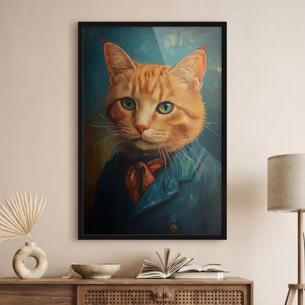 Plakatas Raudonas katinas su Van Gogo portreto stiliaus kostiumu Ne f40647