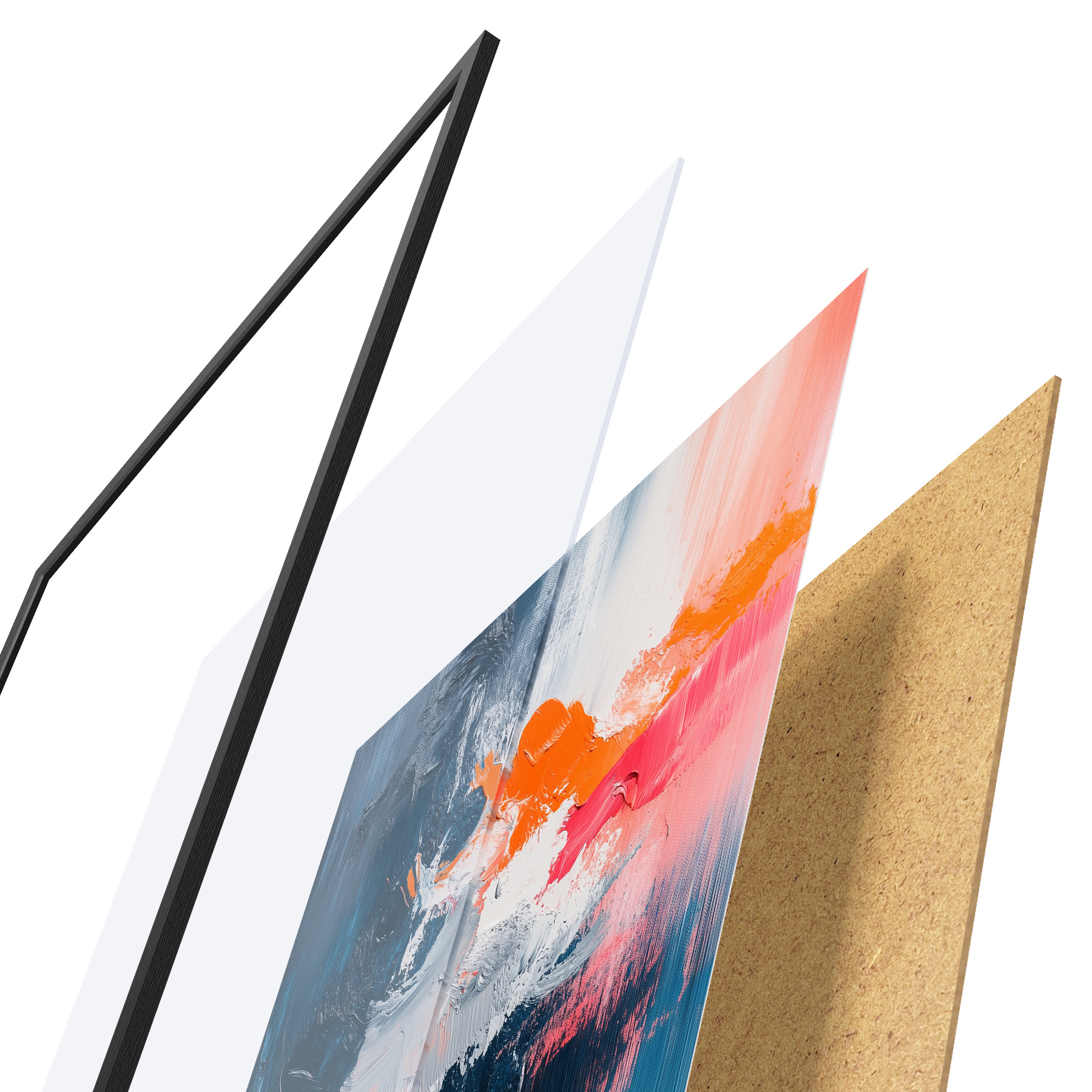 Plakatą sudaro rėmas, pleksiklas, atspausdintas vaizdas ir medžio drožlių plokštės pagrindas. Plakatą galima iš karto pakabinti ant sienos dėl kitoje pusėje esančių laikiklių.